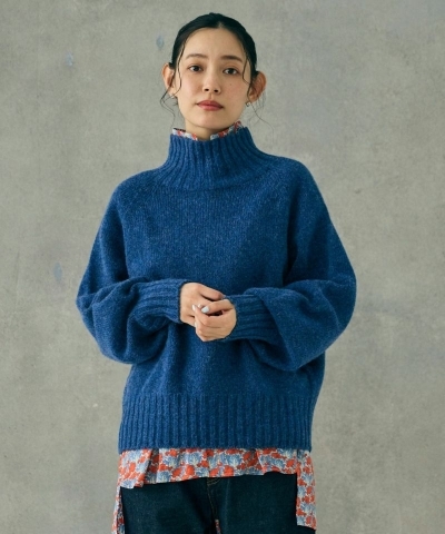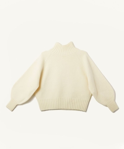 首をしっかり包み込むショート丈のハイネックニット。