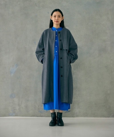 ノーカラーですっきりとした首元はブラウスやタートルネックなどインナーデザインを選ばずにスタイリングを楽しめます。