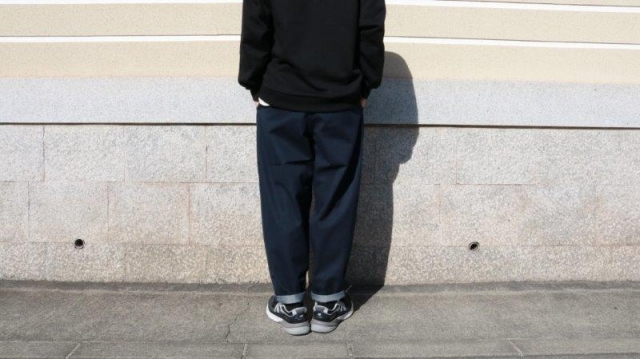 テーパードがしっかり効いているうえに、ステッチが同色になっているので、キレイ目な印象でご着用いただけます。