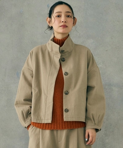 比翼ボタンのスタンドカラーのブルゾン。