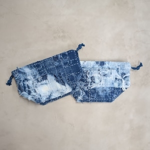 “DENTO” SASHIKO DRAWSTRING BAG BORO ver