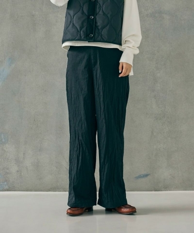 すとんと落ちたワイドストレートシルエットのイージーパンツ。