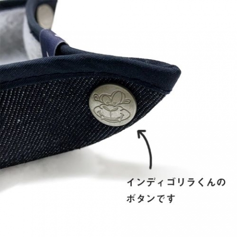 釦はJEANZOOオリジナルキャラクター”インディゴリラ”くん仕様となっております。