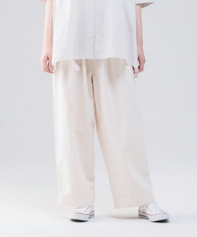 オールシーズン穿ける、10ozデニム素材を使用した丸みのあるバルーンシルエットパンツ。