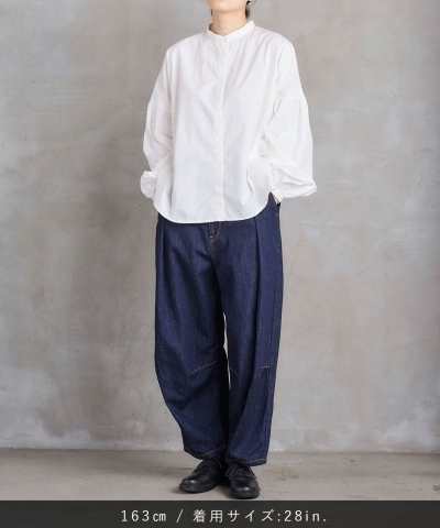 ヒップ回りを大きくとり、裾に向かってテーパードがかかったボリュームのあるワイドシルエット。