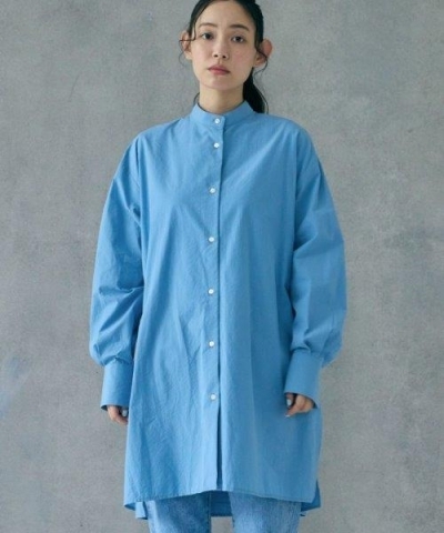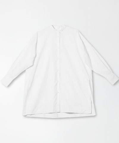 60番の糸を使った、ほどよいハリのあるタイプライター素材ですが、上質で柔らかい着心地になるように、しっとりとしたなめらかさと細かいしわ感を素材の加工で表現しています。