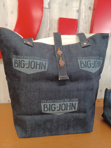 レーザーを使ってBIGJOHNの新旧ロゴなどを入れております。