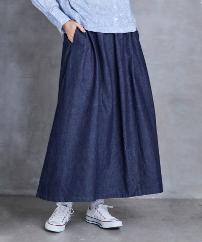 足元まで隠れるロングスカートなので、気になる脚のラインも自然にカバーしてくれます。