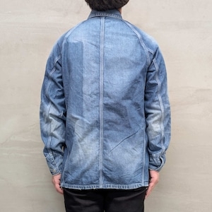 ここ数年サンプル作りを繰り返していたデニムカバーオールがついに完成しました。BLUE SAKURA初のオリジナルデザインカバーオールで、10オンスの国産デニムを使用したラグランスリーブ仕様のカバーオールです。グリーンステッチをアクセントに施し、ヴィンテージ感あふれるディテールを各所に取り入れています。カジュアルな着こなしからワークスタイルまで、さまざまなシーンで活躍が期待出来る一着です。