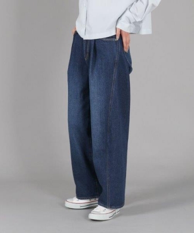 インディゴの深みはしっかりと残しながら、女性らしい淡いトーンになるような色落ち加工をしています。時間が経つにつれてさらに明るい色合いに変化していきます。