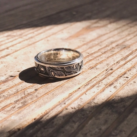 FLUIオリジナルデザインのペイズリー柄を、黒を基調に大胆に配置したリング。