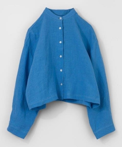 首元がすっきり見えるバンドカラーのシャツ。