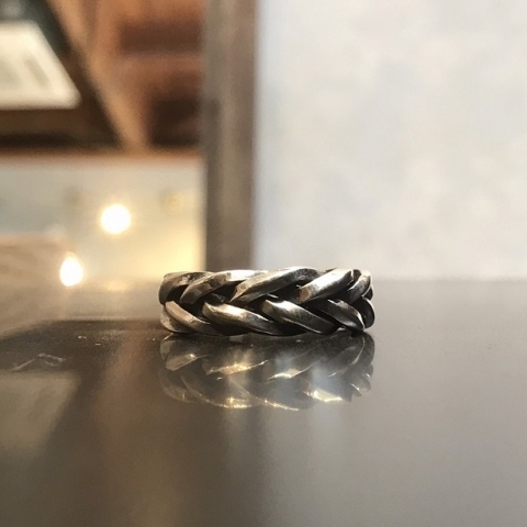蛇を思わせる編み込みが印象的なリング。