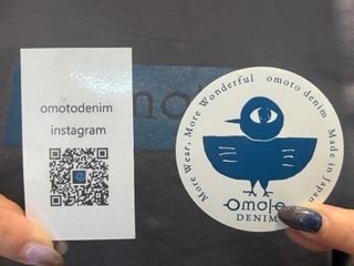現在、児島のomotodenim直営店舗でインスタグラムをフォローしていただいた方におもとりのステッカーをプレゼントしています。