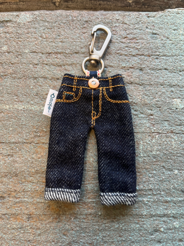 本物のデニムをポケットサイズに。【ミニジーンズキーホルダー】