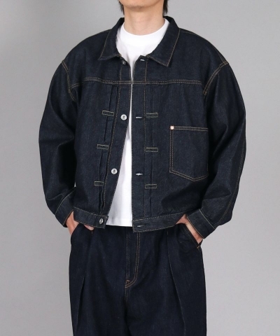短めの着丈×ボックスシルエットに、前身頃のアクションプリーツやボックスステッチなど、1st型ならではのディテールを忠実に再現。