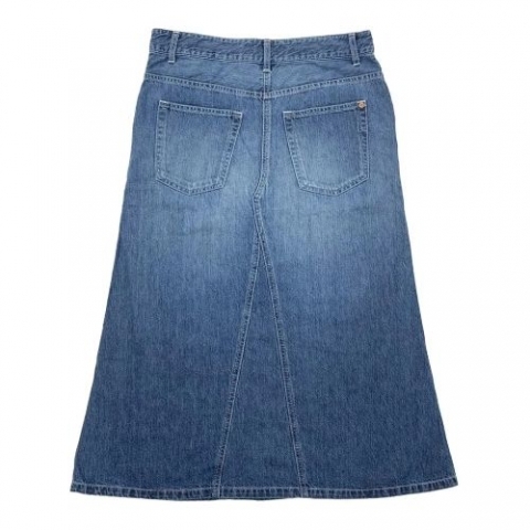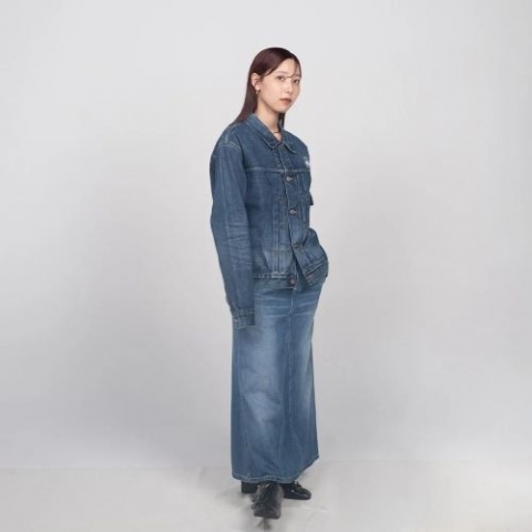 淡いブルーと女性らしい柔らかい加工感が特徴のユーズド加工のロング丈タイプです。
