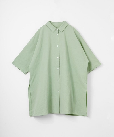 縦のラインが美しいミドルレングスの5分袖シャツ。