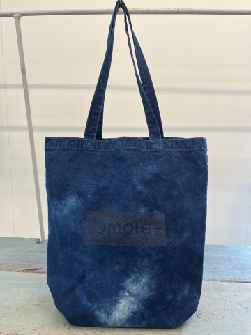 こちらは、藍染の職人さんが一つひとつ丁寧に手染めした、世界にひとつだけのキャンバストートです。伝統的なインディゴのムラ染めで仕上げられた生地は、濃淡やにじみが自然に現れ、まるで一枚の絵のような美しさをまとっています。
