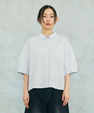 袖口にタックを入れた、やわらかな5分袖。