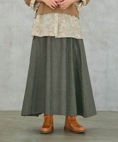 たっぷりのギャザー入りで、ふわっと広がるAラインシルエットのスカート。