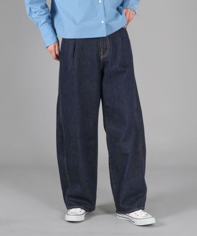 立体的なシルエットが特徴のワイドジーンズ。