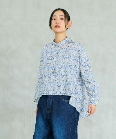 前後差を大きくつけたシルエットがSETTOらしい、遊び心をきかせたリバティプリントシャツ。