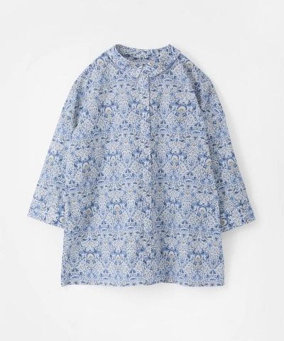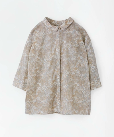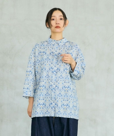 リバティプリントを日常に気負わず楽しめる、襟付きの七分袖シャツ。