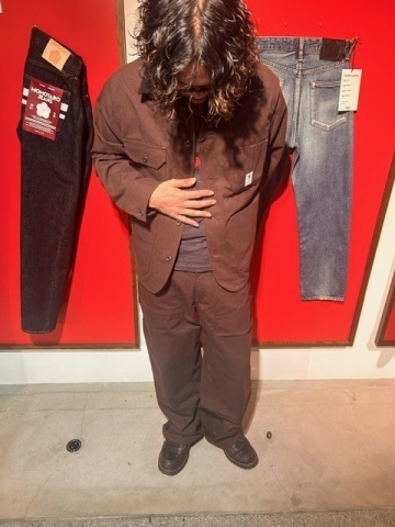 車掌さんがきるようなワークテイストのダックをオリジナルのブラウンで染めています。