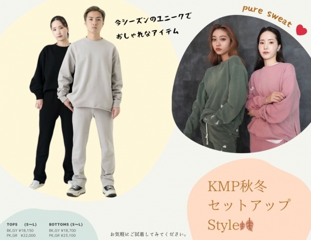 秋冬 おしゃれセットアップコーデ 『KMPピュアスウェット』