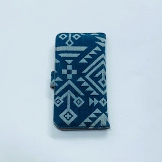 内生地はブラウン、外生地は淡いデニムに全面にオルテガ柄のレーザー加工を施したタイプ。