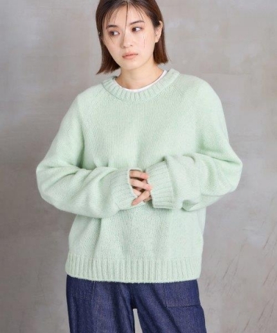 ホールガーメント仕様(一着丸ごと立体的に編み上げる、縫い目のない編み方)で継ぎ目によるごわつきがない、ソフトで軽くふわふわした着心地が特徴です。