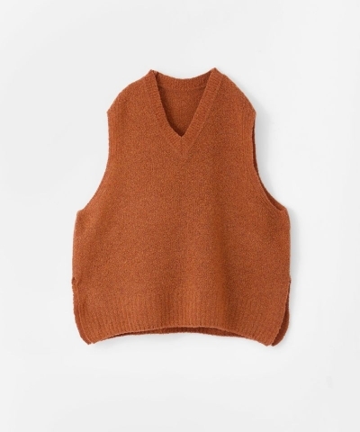 目の粗いブークレニットで、素材の凸凹感やメランジの表情を楽しめるニット。