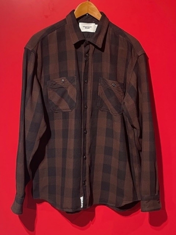 こちらのチェックシャツは、先染めの産地として知られる兵庫県・西脇で織り上げた、コットンツイルの生地を使用しています。