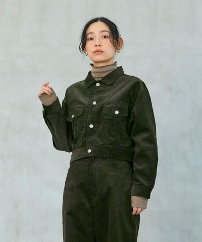 コーデュロイ生地で仕立てた、コンパクトで丸みを帯びたシルエットのジャケット。