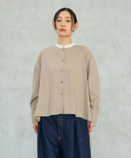 首元のクレリックデザインが印象的なバンドカラーシャツ。