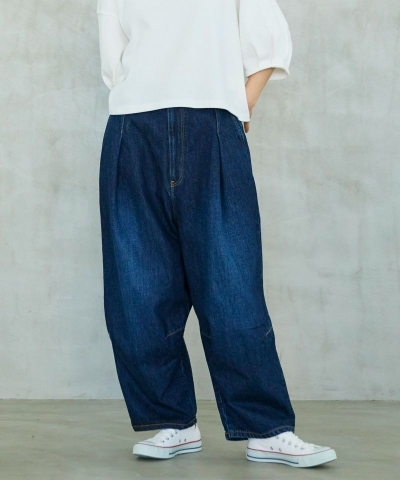 ヒップ回りを大きくとり、裾に向かってテーパードがかかったボリュームのあるワイドシルエット。