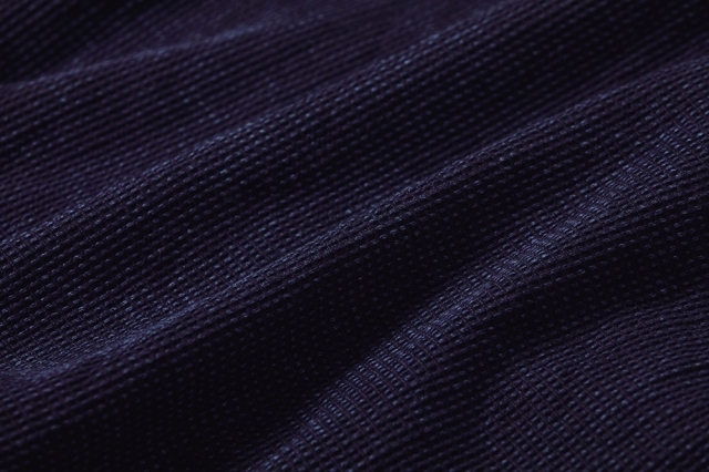 刺子調の織組織により、生地表面はキューブ状の立体的な表情に。独特な凹凸感がありながらも、しなやかで柔らかな風合いに仕上げています。