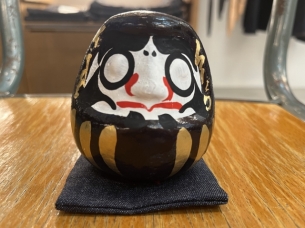 西日本有数のだるま産地・倉敷市玉島で手仕事によりつくられた「玉島だるま」を、児島の藍染職人・蓮岡佳明さんが深みあるインディゴブルーに染め上げた特別なだるま。