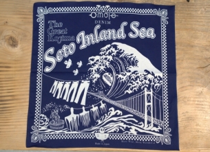 本日ご紹介するのは、岡山/児島の名物や風景をデザインにたっぷり詰め込んだバンダナ。