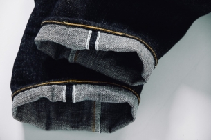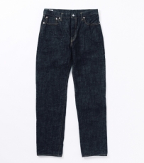 生地には15.5ozのスラブネップデニムを使用。ムラ感のあるロングスラブ糸とネップ糸による表情豊かな生地は、穿き込むほどに縦に落ちるタテ落ちが現れます。黒っぽく見えるまでインディゴを濃く染め上げている為、コントラストのある色落ちも魅力です。