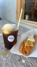 ホットドッグは、シャキシャキ食感のカレー風味キャベツとジューシーなソーセージ、そしてその場でトーストするサクッと香ばしいパンの組み合わせ。